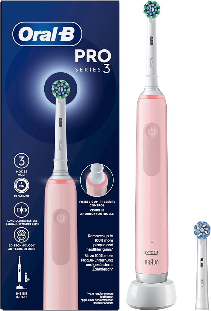 Oral-B Pro 3 Electric Toothbrush with Smart Pressure Sensor, 1 Cross Action Toothbrush Head & Travel Case